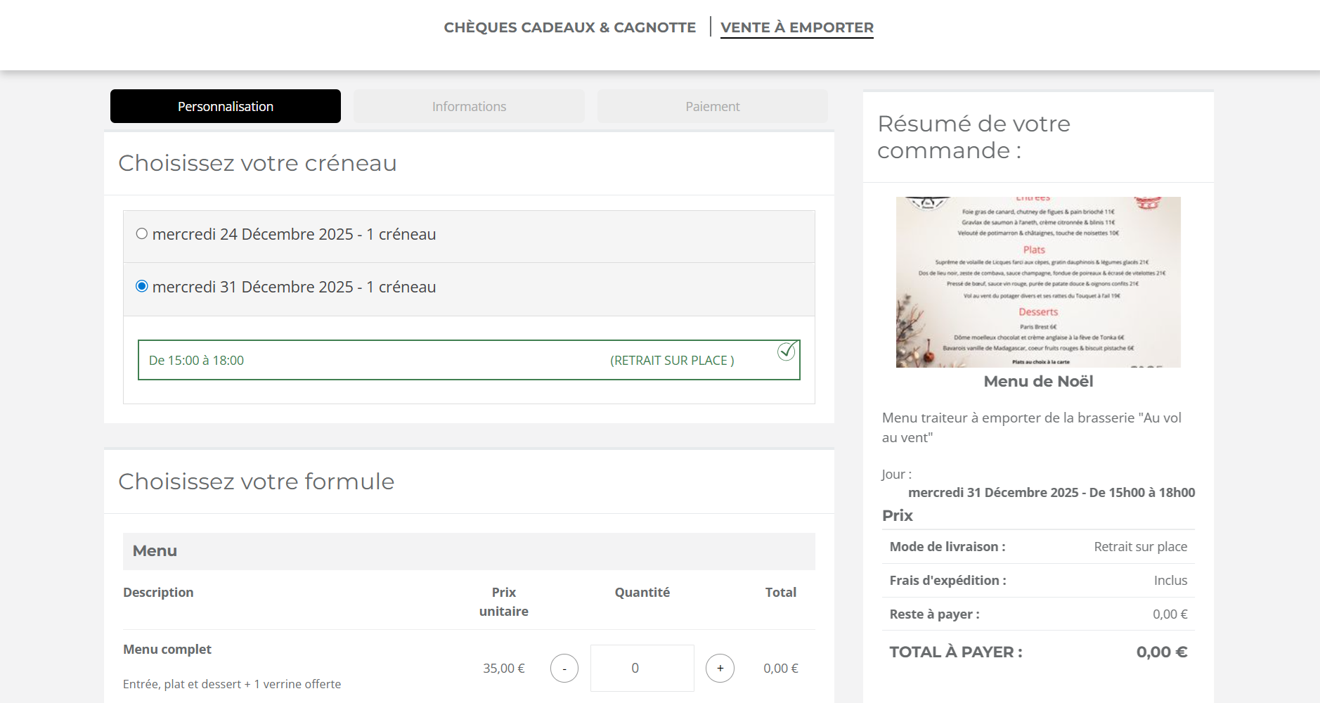 Retrouvez notre menu à emporter pour les fêtes de fin d’année